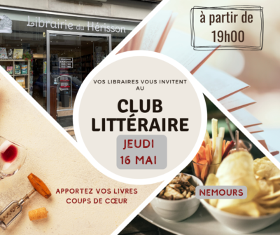Librairie du Hérisson 38 rue Gautier 1er, NemoursChers amoureux des livres, notre prochaine rencontre du club littéraire aura lieu le jeudi 16 mai. Apportez un ou plusieurs de vos livres préférés, ceux qui vous ont émus, fait rire, pleurer ou réfléchir, et soyez prêts à en discuter avec d’autres passionnés. C’est une occasion parfaite pour découvrir de nouvelles œuvres et pourquoi pas, […]